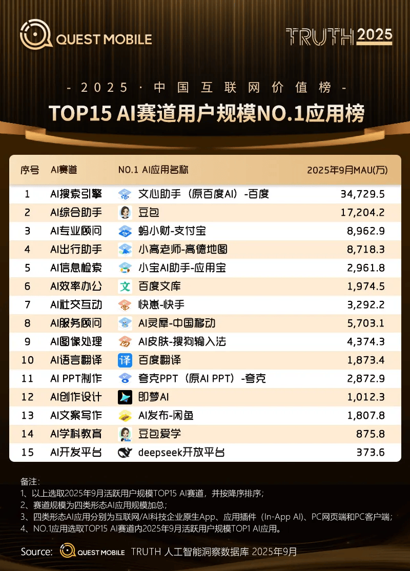 取豆包、千问构成国内三大AI超等入口。