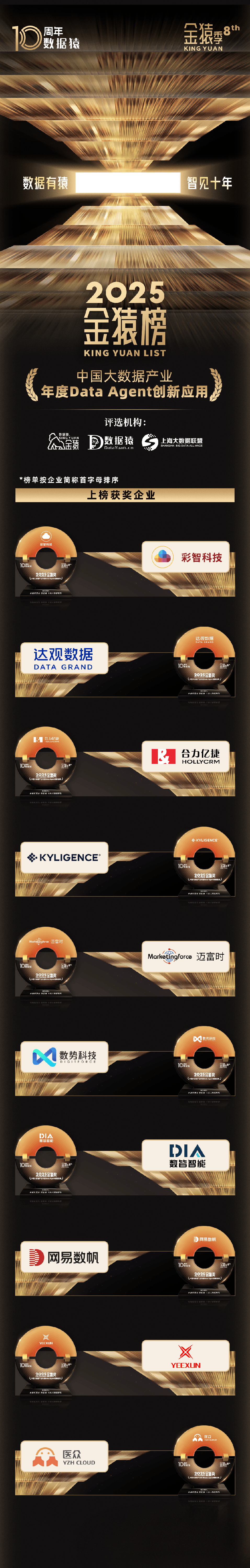 荣登此次Data Agent立异使用榜单并获颁项的各大企业。