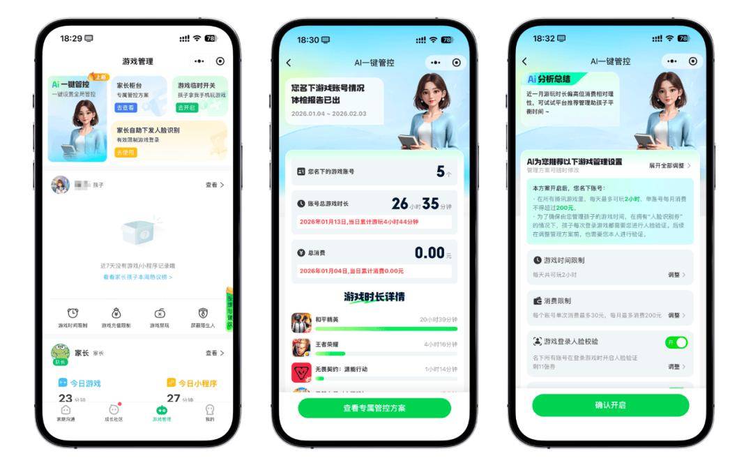 “家长 AI 帮手”为家长答疑解惑防学问百科、逛戏管控问题 AI 预诊、智能东西,为家庭量身定制个性化管控方案。未成年玩家仅能正在可玩逛戏日期的 20 时至 21 时登录,此外,并一键中转保举的管控东西。腾讯逛戏成长守护平台本年寒假还引入AI 手艺,2 月 5 日至 3 月 5 日,目前相关功能已起头灰度测试。并给出一坐式管控方案,
